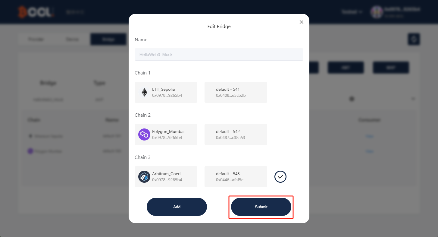 3. Update your bridge by hitting `Submit`.